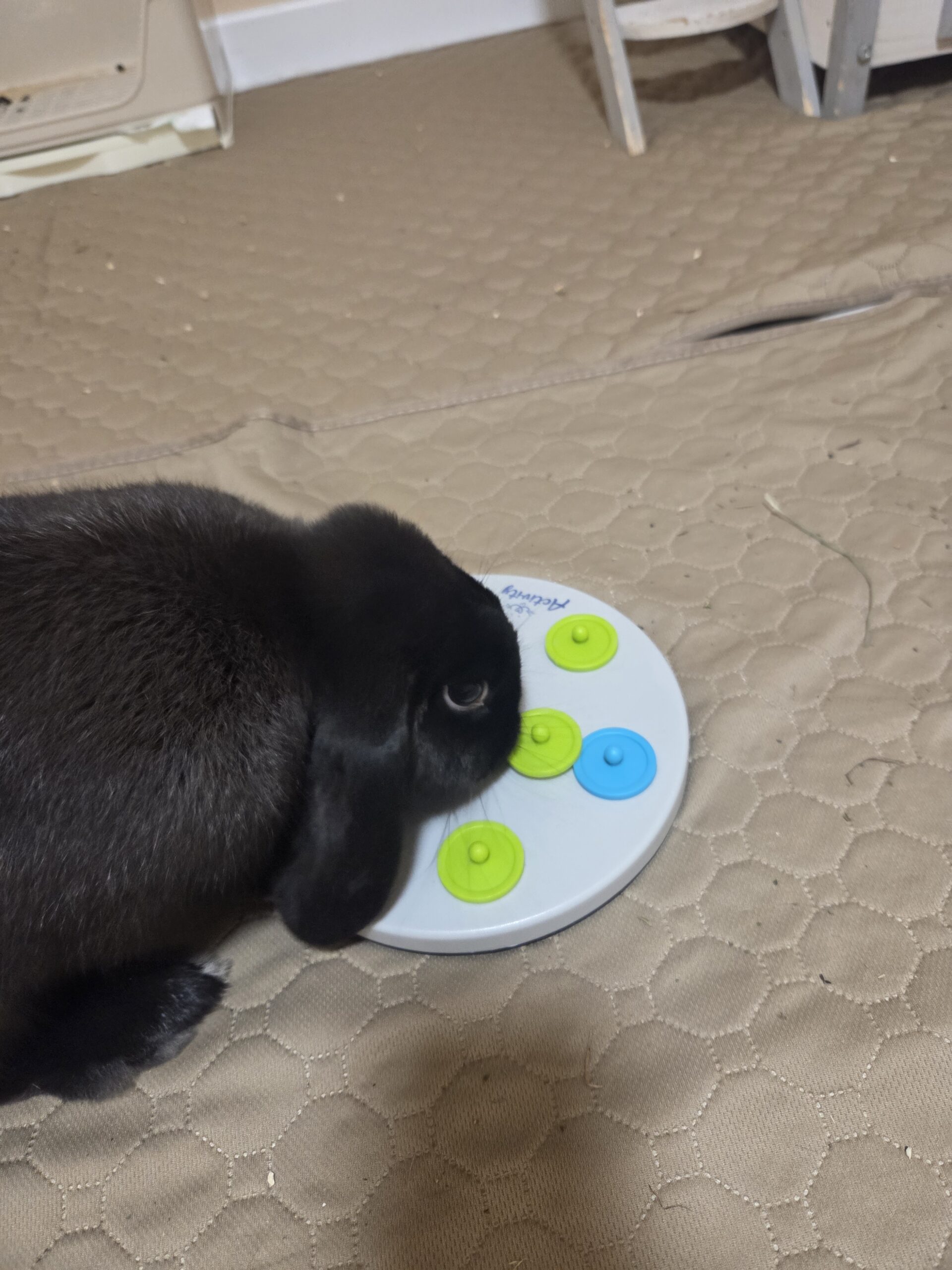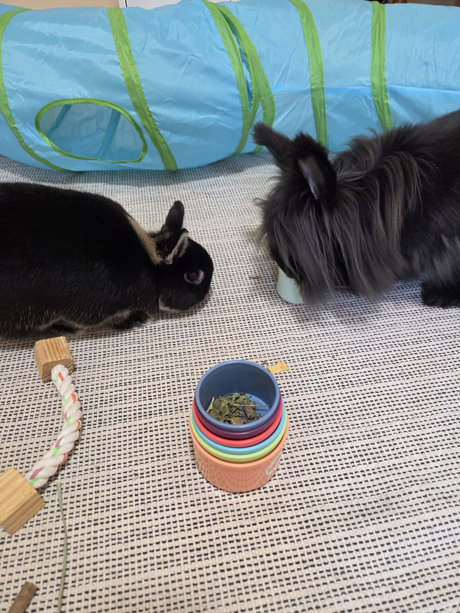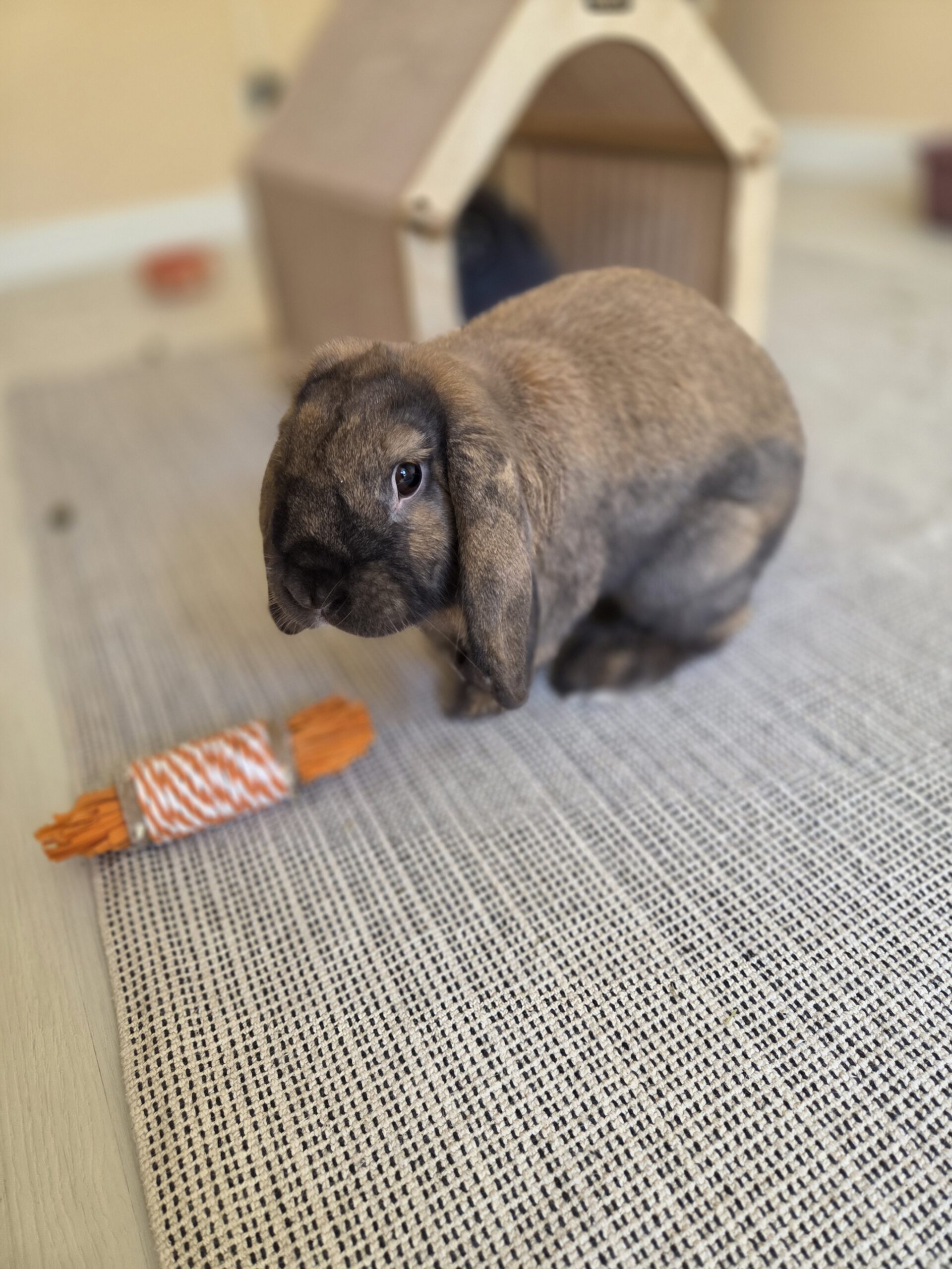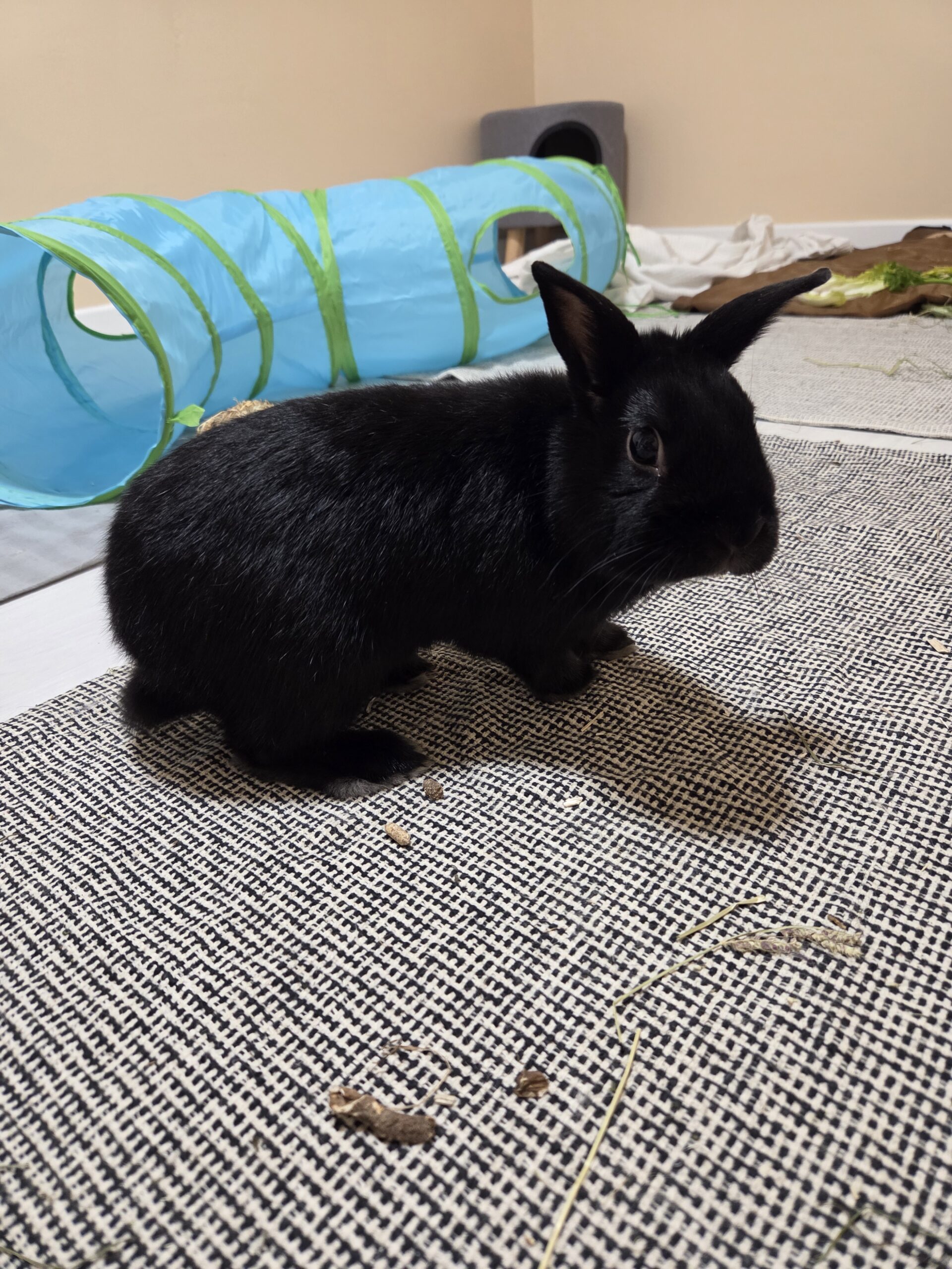 La pièce étant grande je peux y accueillir des lapins géants sans problème.